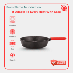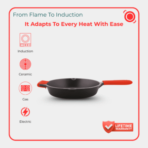 Crafted in India from 100% Recyclable Pre-Seasoned Cast Iron, this 26cm skillet features perfect cooking and searing. Designed for even heat distribution and long-lasting performance, it’s ideal for creating restaurant-quality meals at home.