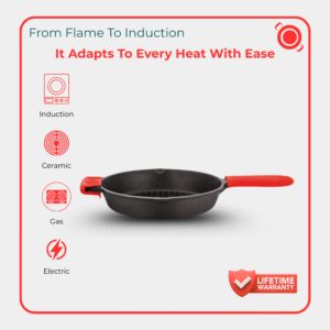 Crafted in India from 100% Recyclable Pre-Seasoned Cast Iron, this 20cm fry pan is perfect for searing, sautĂ©ing, and frying. Designed for even heat distribution and long-lasting performance, it’s ideal for creating restaurant-quality meals at home.