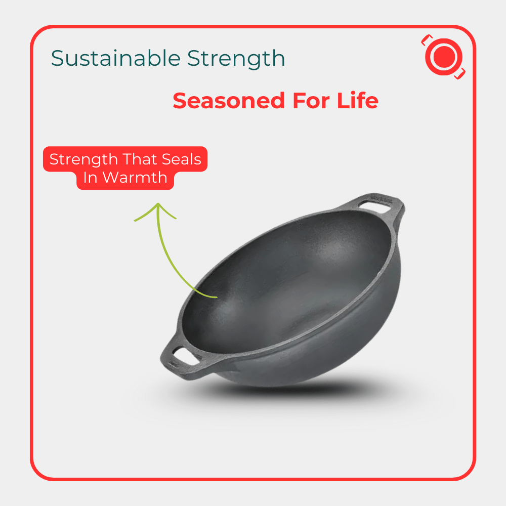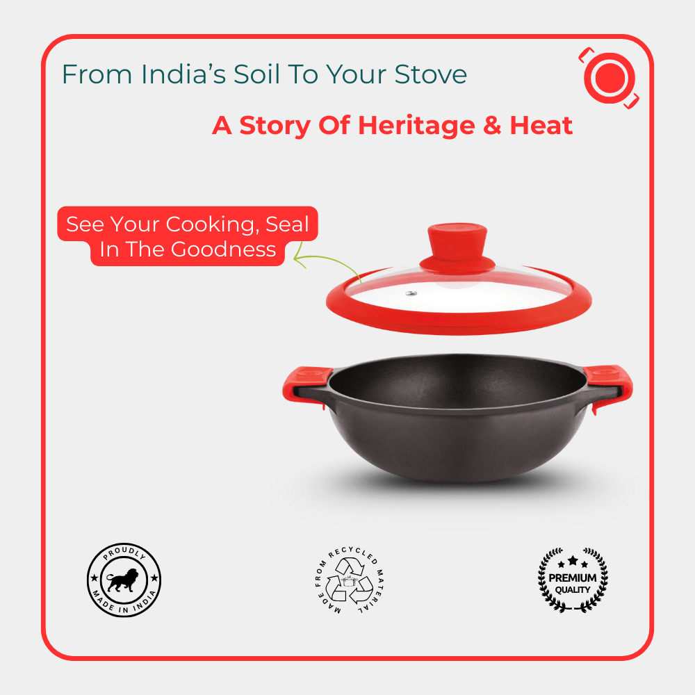 Cast Iron Deep Kadai With Glass Lid 26cm