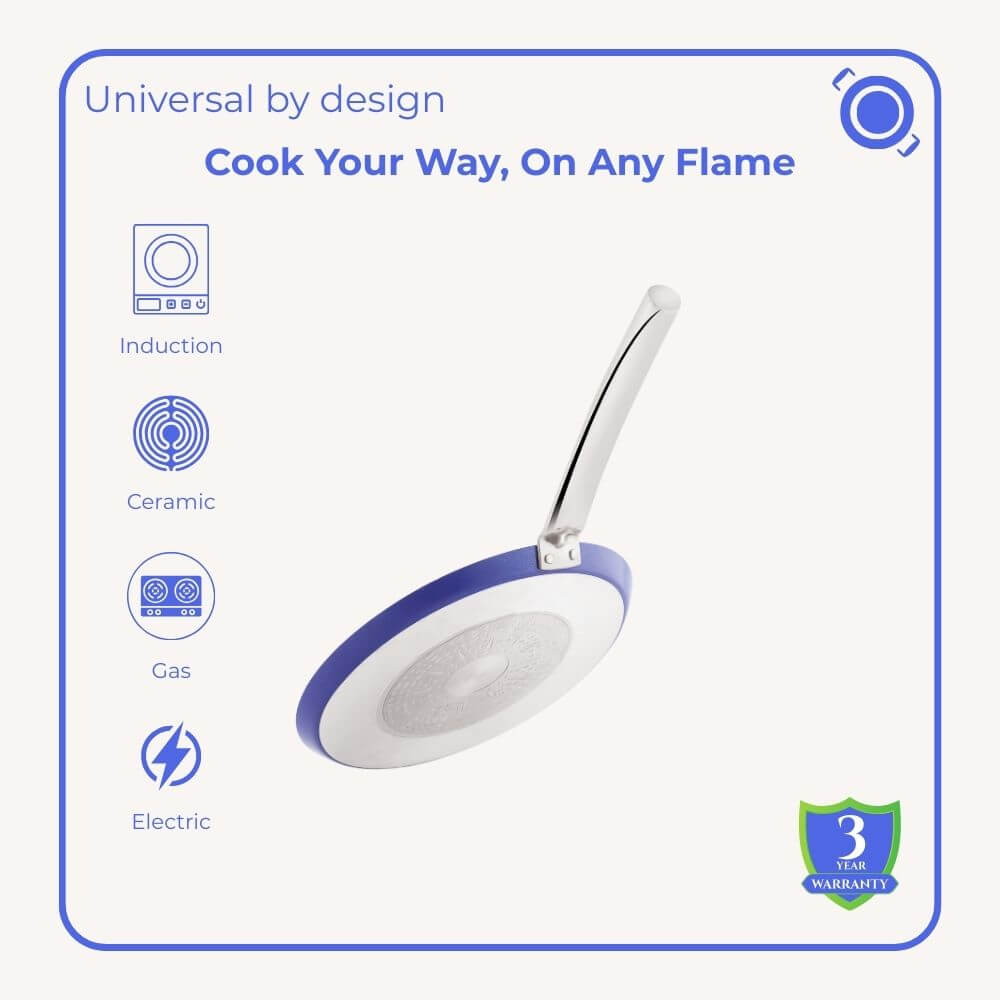 Crafted with advanced 7th Generation Quantaseal™ Ceramic Coating, the Ceramic Cookware Set, Tawa and Kadai carries the promise of gentle, everyday cooking. Its smooth, non-porous surface cares for each meal with reliable non-stick ease, standing strong against scratches and daily use, even with metal utensils. Thoughtfully made without PFOA, lead, cadmium, nickel, or arsenic, it brings a sense of safety to every kitchen. The food-grade body spreads heat evenly across gas, induction, and ceramic cooktops, welcoming both slow simmer and lively high heat. Blending lasting strength with graceful design, this set also supports tree-plantation efforts, nurturing homes and the earth, one meal at a time.