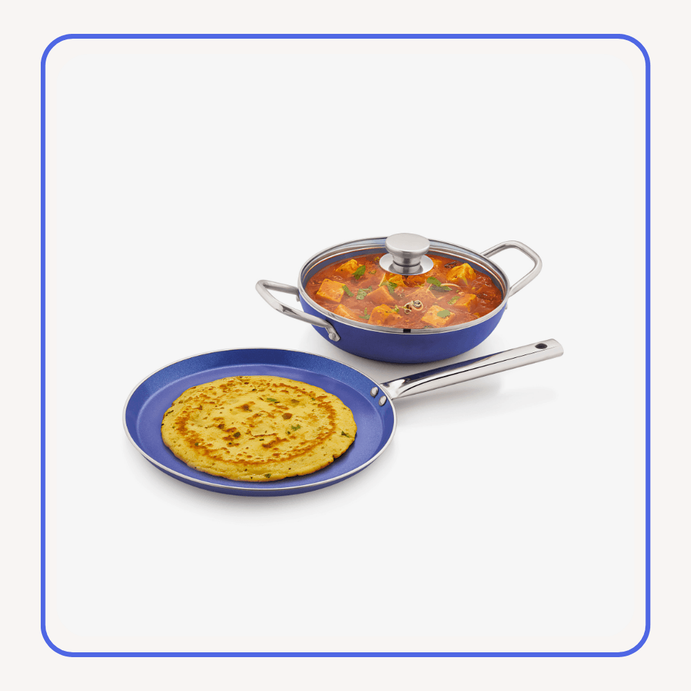 Ceramic Cookware Set 3 Pcs – Fry Pan, Tawa and Kadai (Blue)