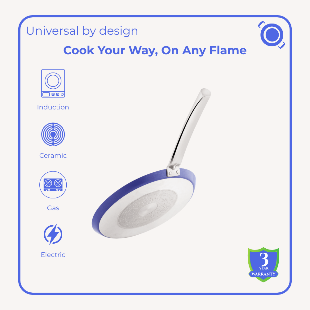 Some meals carry the comfort of home from the very first sizzle. This Ceramic Cookware Trio Set of Ceramic Fry Pan, Tawa and Kadai brings that warmth alive with steady, even heating and effortless cooking. In the Ceramic Fry Pan, vibrant vegetables and quick breakfasts come together with ease, while the Ceramic Tawa turns out soft rotis and golden dosas. The Ceramic Kadai gently holds bubbling curries and comforting khichdi. Together, this trio transforms everyday recipes into nourishing moments filled with ease, flavour, and quiet happiness.