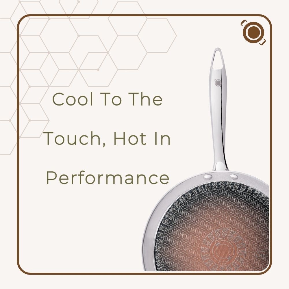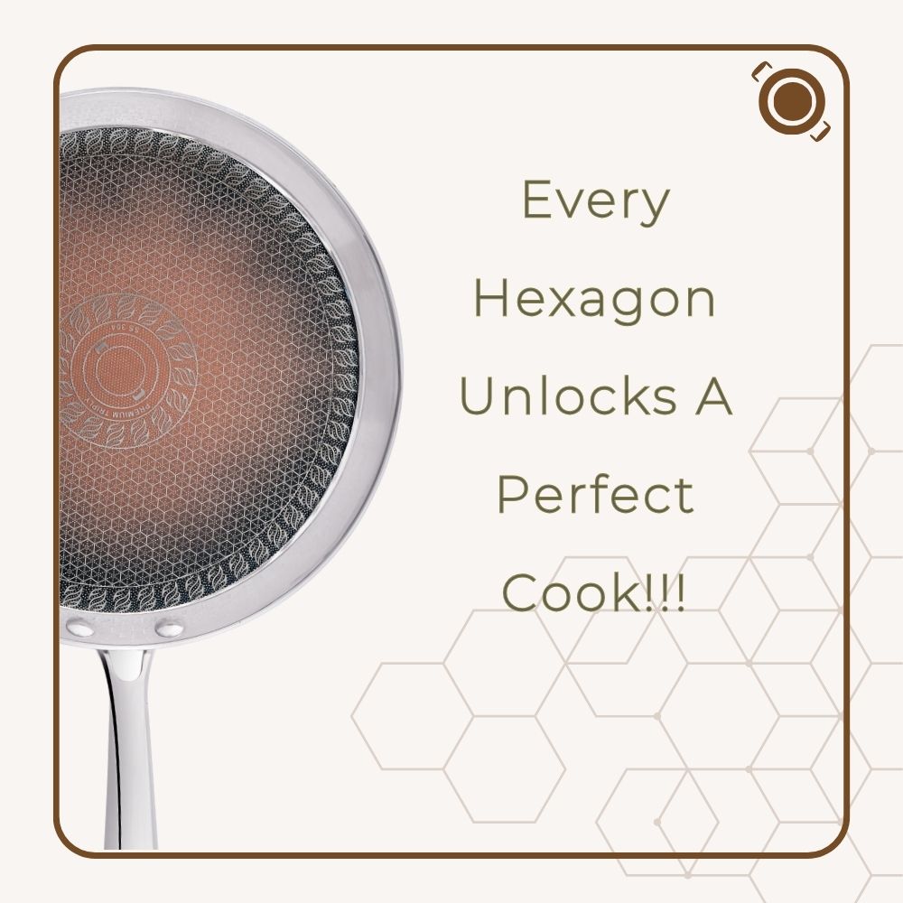 Smooth, wide, and ready for the heat! The honeycomb tawa is made from stainless steel and shaped for steady cooking across its entire surface. The honeycomb layout works with the 7th Generation Quantaseal™ ceramic layer to create a surface that releases food easily and resists everyday wear. Built through eco-conscious methods, it contains no PFOA, lead, cadmium, nickel, or arsenic, keeping your kitchen both safe and sustainable.